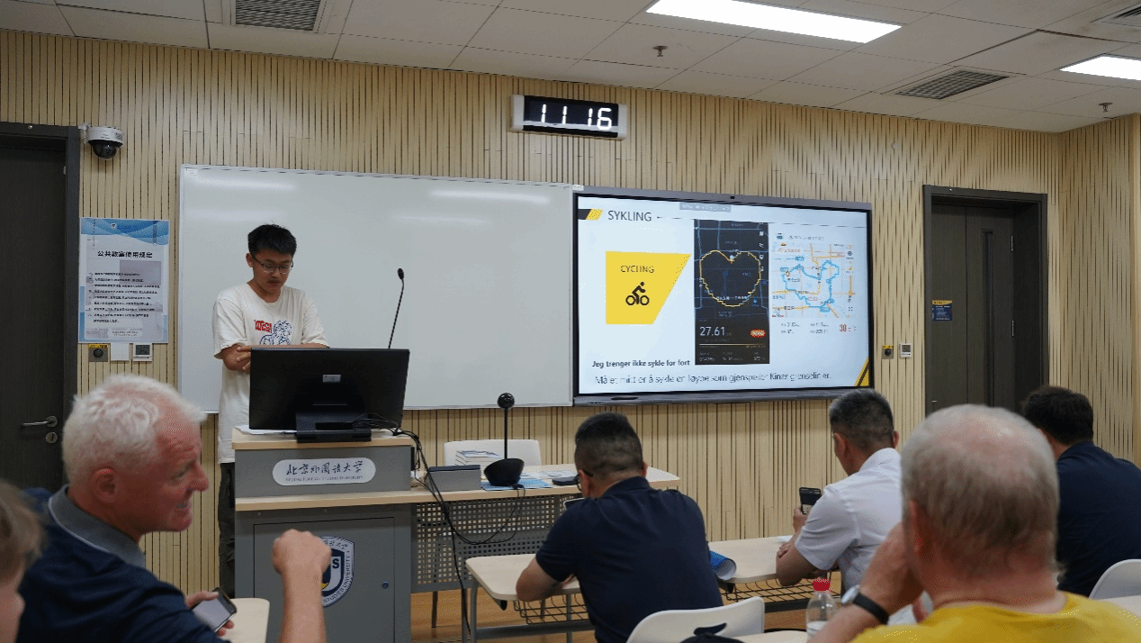 托雷·纳尔兰德先生是“骑自行车促和平”组织的创始人和主席,是挪威知名友华人士。他向在场师生讲述了自己 1999年从北京到卑尔根的骑行经历,介绍了途经中国、哈萨克斯坦、俄罗斯、芬兰、瑞典和挪威时的所见所闻。他用生动的语言和丰富的图片,让师生们身临其境,感受了一次跨越亚欧大陆的骑行之旅。
