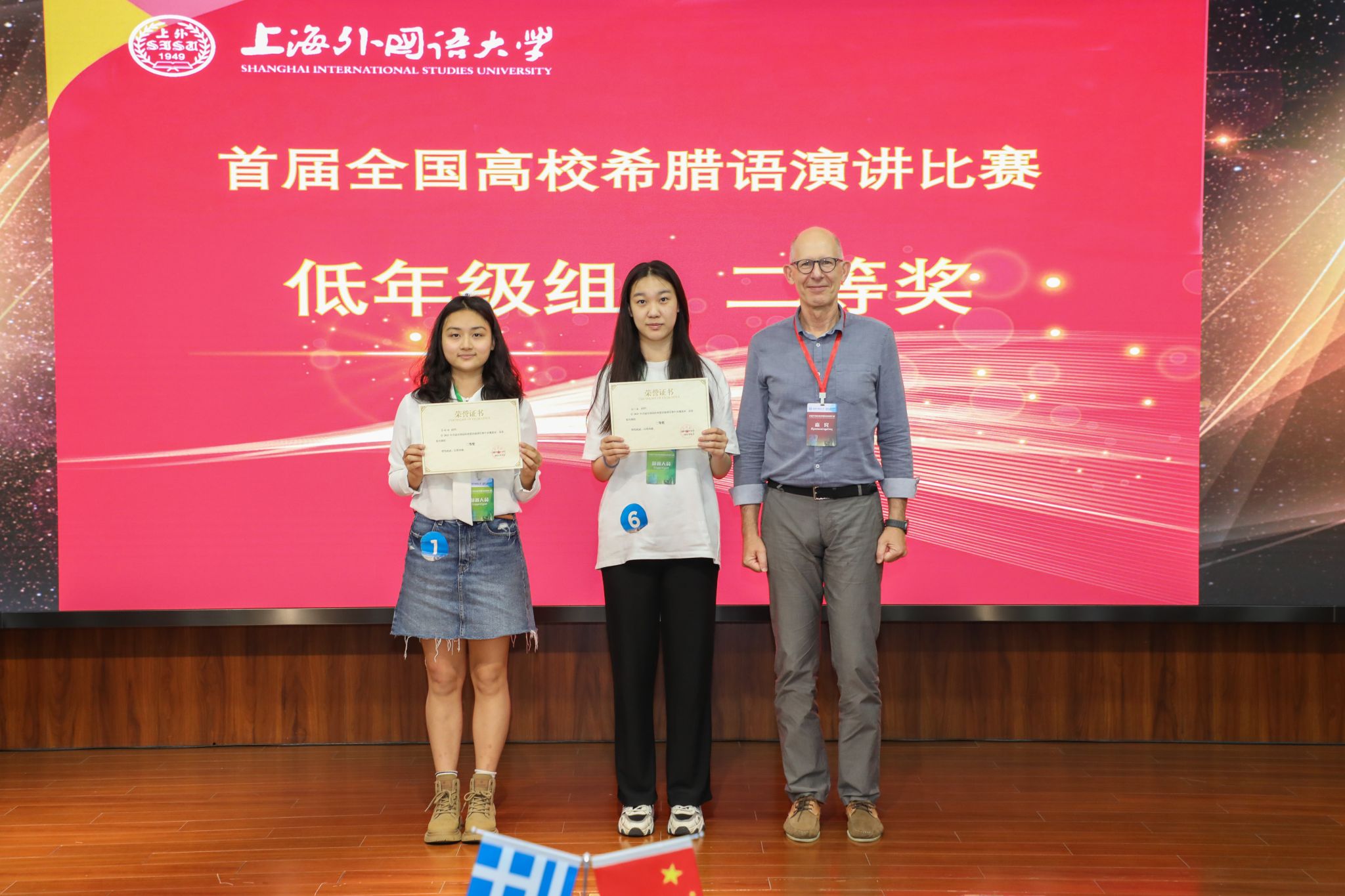 6月7日,首届全国高校希腊语演讲比赛决赛在上海外国语大学举行。经过激烈角逐,beat365官网beat365在线唯一官网希腊语专业24级高铭宇获低年级组一等奖,苗语桐获低年级组二等奖,潘恩乔获低年级组优胜奖。