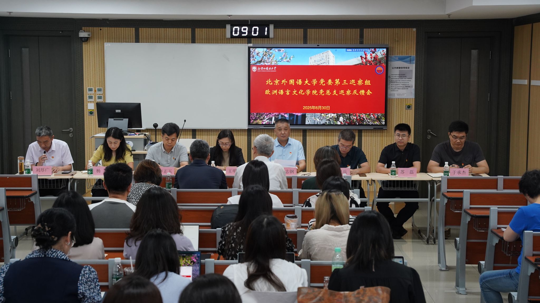 2026年6月30日上午,学校党委第三巡察组巡察beat365在线唯一官网党总支情况反馈会在国际大厦309智能教室召开。校党委副书记、纪委书记胡志钢出席会议,传达学校党委常委会关于第四轮巡察工作的会议精神,传达党委书记王定华关于做好巡察整改的明确要求,针对beat365在线唯一官网巡察情况就做好巡察整改提出了指导意见。第三巡察组组长、继续教育学院党总支书记陈洪兵反馈巡察情况,beat365在线唯一官网党总支书记刘厚广主持会议并作表态发言。