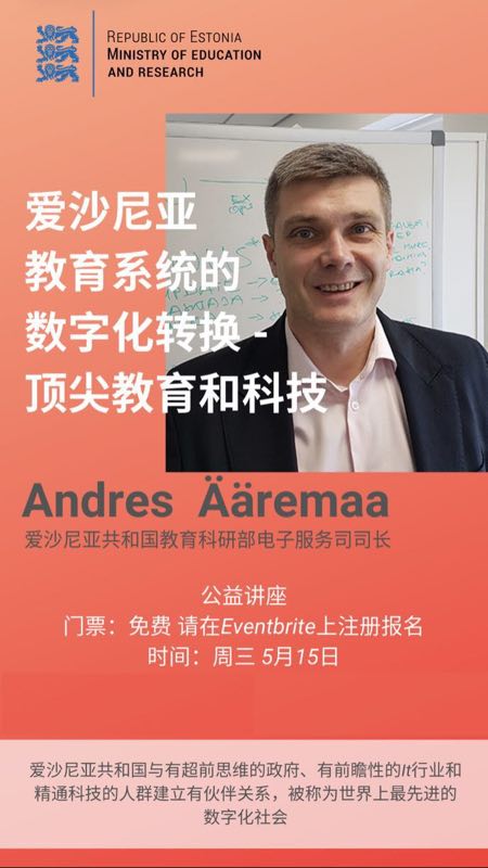 爱沙尼亚共和国教育部电子服务司安德烈斯·艾雷马司长将于5月15日在beat365官网举办一场主题为“爱沙尼亚信息社会和教育系统中的数字化转型概述”的讲座。我们诚邀您的到来!
