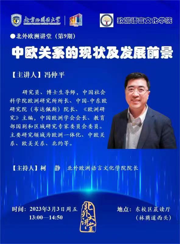3月3日,北外欧洲讲堂将邀请中国社会科学院欧洲研究所所长、研究员、博士生导师冯仲平跟大家一起探讨中欧关系的话题。他将为大家带来一场题为《中欧关系的现状及发展前景》的讲座。