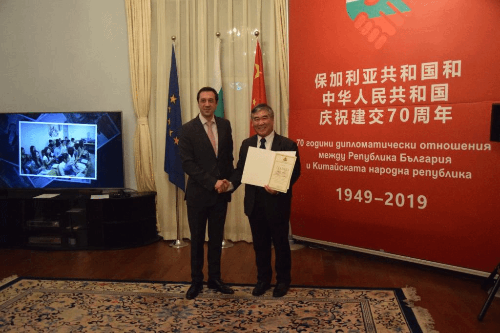 2019年12月8日,中保建交70周年庆祝活动“保加利亚语言文化推广杰出贡献奖”颁奖仪式在保加利亚驻华使馆举行。为表彰北外教师在保加利亚语言教学和文学、文化研究及推广方面的贡献,保加利亚教育科技部授予葛志强教授、林温霜教授“保加利亚语言文化推广杰出贡献奖”;保加利亚大特尔诺沃大学授予陈瑛教授“保加利亚语言文化推广杰出贡献奖”。保加利亚驻华大使格里戈尔·波罗扎诺夫为保加利亚语专业教师颁奖。应保驻华大使邀请,副校长袁军教授参加了颁奖仪式。