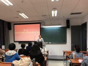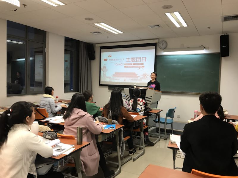 17级保语班的同学们踊跃参与到开学初举办的“砥砺奋进的五年”大型成就展的参观活动,认真学习十八大以来党和国家事业上取得的辉煌成就。在本学期的各种主题团日活动中,17级保语班的同学们更是表现优异。不但积极参与到主题团日活动中,而且力求以丰富有趣的形式开展各种学习活动。例如在“与信仰对话——学习《习近平的七年知青岁月》主题团日活动”中,17级保语班的同学们开展了“一书共读”的活动,同学们共同阅读《习近平的七年知青岁月》一书,在小组讨论之后向全班同学讲述读到的故事并分享自己的阅读感悟与心得。这不仅提高了阅读效率,还给予了同学们表达的空间。在“青春喜迎十九大,不忘初心跟党走——新生活·新角色主题团日活动”中,同学们通过观看周宇校友在党代表通道发言的视频材料学习外交官眼中的“大国外交”,从多维度丰富自己的认识。团日活动中的感想与理想分享会让同学们分享自己上大学以来的感受,并聆听其他同学的想法,相互学习、鼓励。同学们在抒发自己的感想的同时还紧密结合了十九大精神,让同学们学习到同龄人对于十九大的看法。随后的中国传统书籍分享会更是开阔了同学们的视野,让大家更加深刻地感悟到中华传统文化的博大精深。
