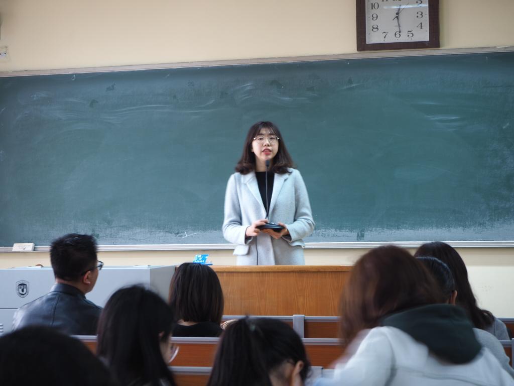 秦烨臻老师随后发言。秦老师指出上一学期学生工作当中存在的一些问题并提出相应解决措施。他要求在场各位学生干部深刻反思工作效率较为低下的问题,并以微信群沟通方式为例,要求在任务逐级通知落实的过程中,所有相关人员均要做到信息有效互通、通知准确传达,并保持头脑脉络清晰。