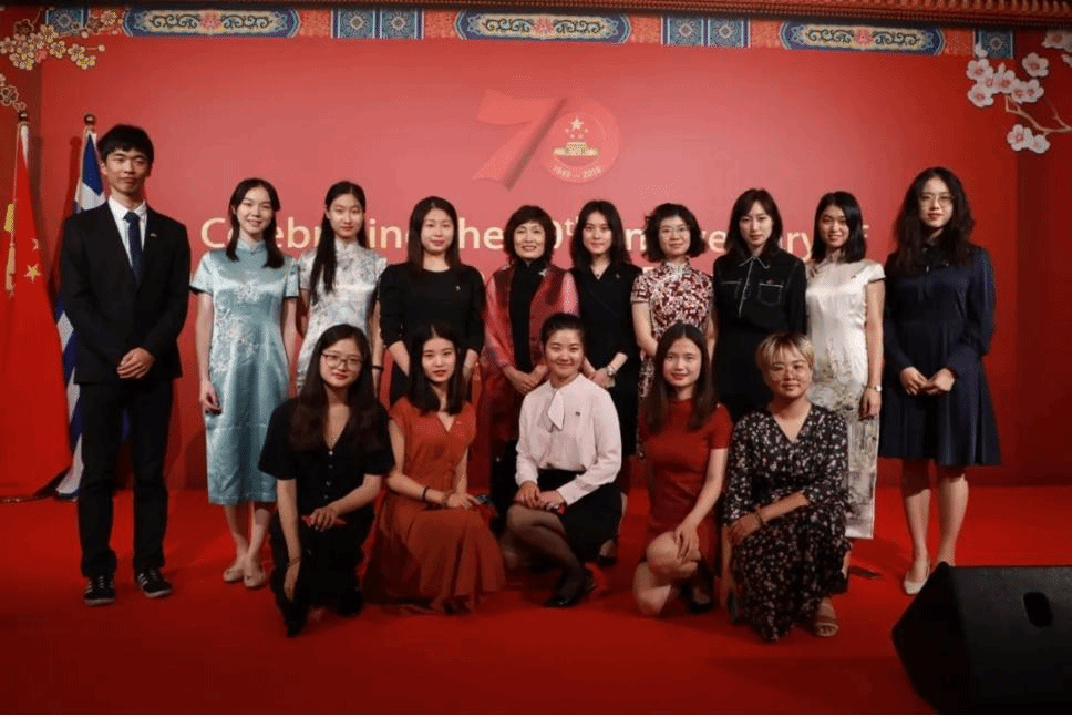 当晚招待会邀请了众多希腊政要和各界友人,旅希华侨华人、中资机构等出席,可谓千里逢迎,高朋满座。章启月大使与希腊发展和投资部长耶奥尔季斯先后致辞,具有中国特色的节目纷纷登场,共同庆祝中华人民共和国成立70周年。我们这些学子来到会场深感熟悉和温暖,即便远在异国他乡,也好似仍在祖国温暖的怀抱。